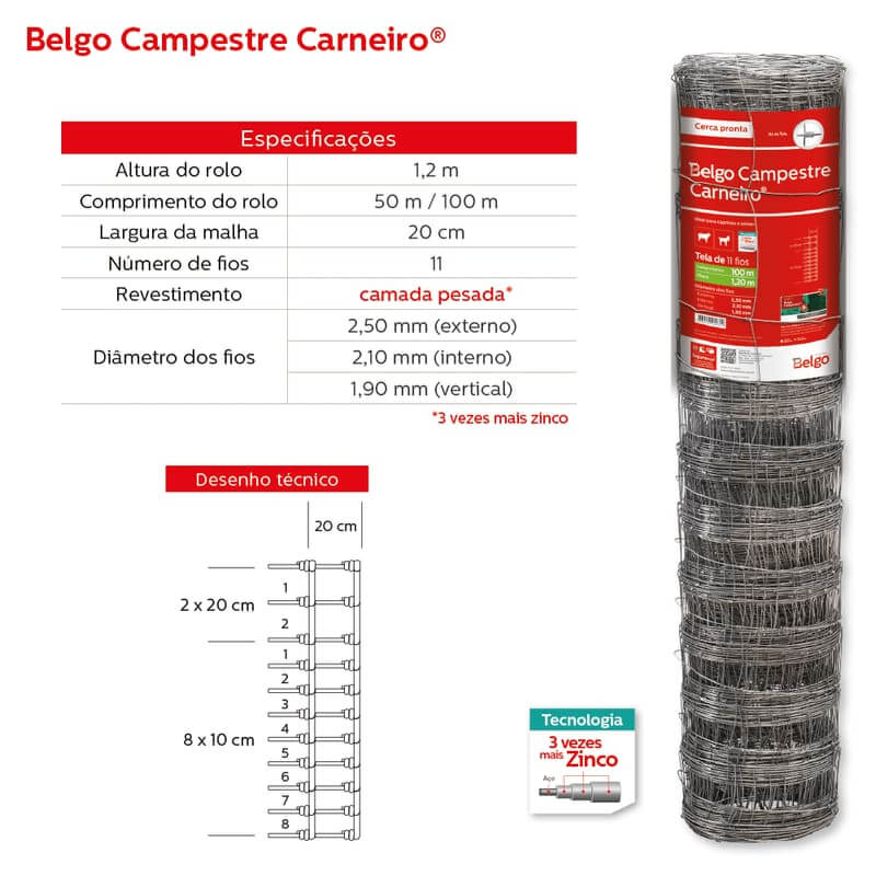 A Cerca Pronta Belgo Campestre Carneiro ® (50m) é o tipo de cerca mais vendido nos EUA e Europa e é ideal para construção de cercas de animais como bovinos, caprinos e ovinos. Além disso, ela também serve para proteção de lavouras, cercas de divisas e beira de estrada.