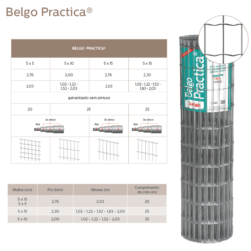 A Tela Belgo Practica ® é flexível, o que permite, inclusive, aguentar o impacto de animais de médio porte. Este tipo de tela conta com tripla camada de zinco, malha crimpada e passa por um processo de galvanização pesado à fogo, o que garante a qualidade e a vida útil do produto.